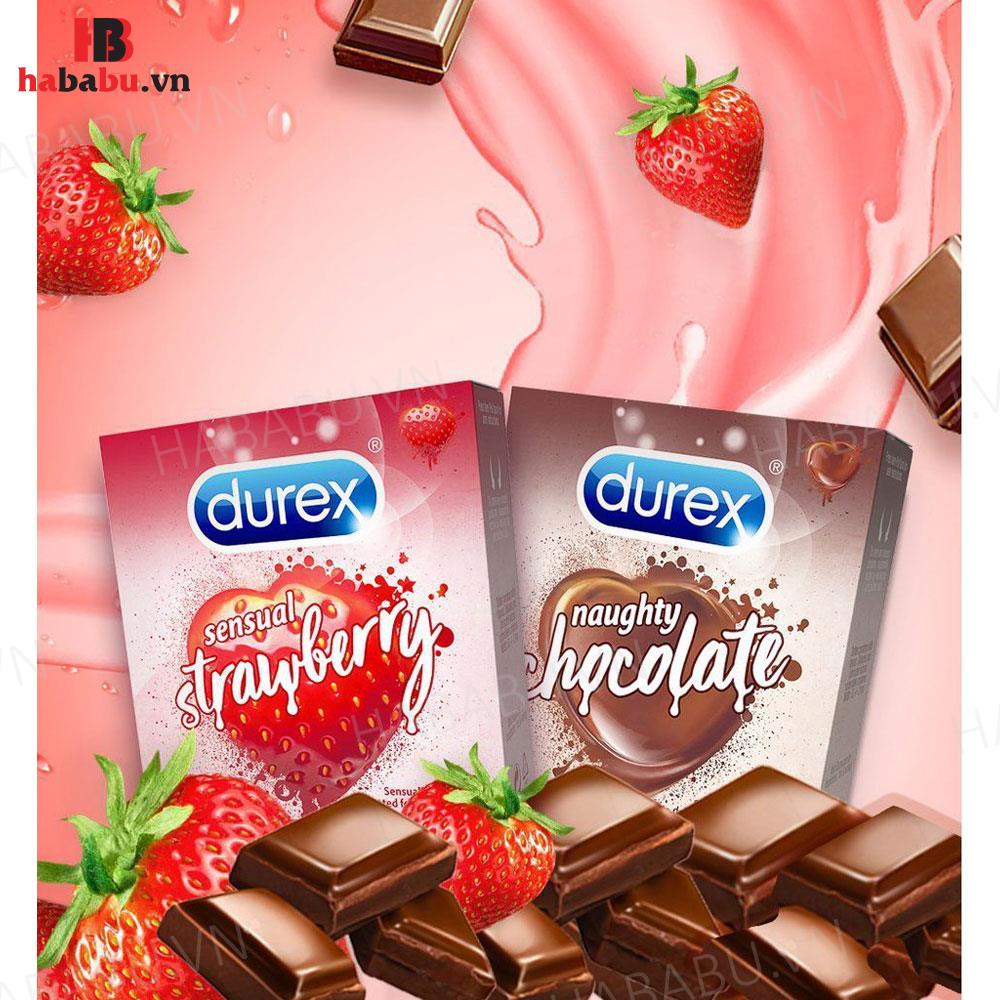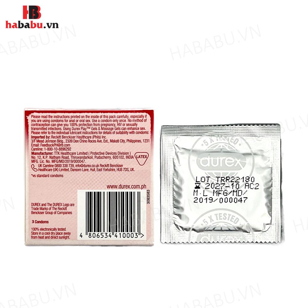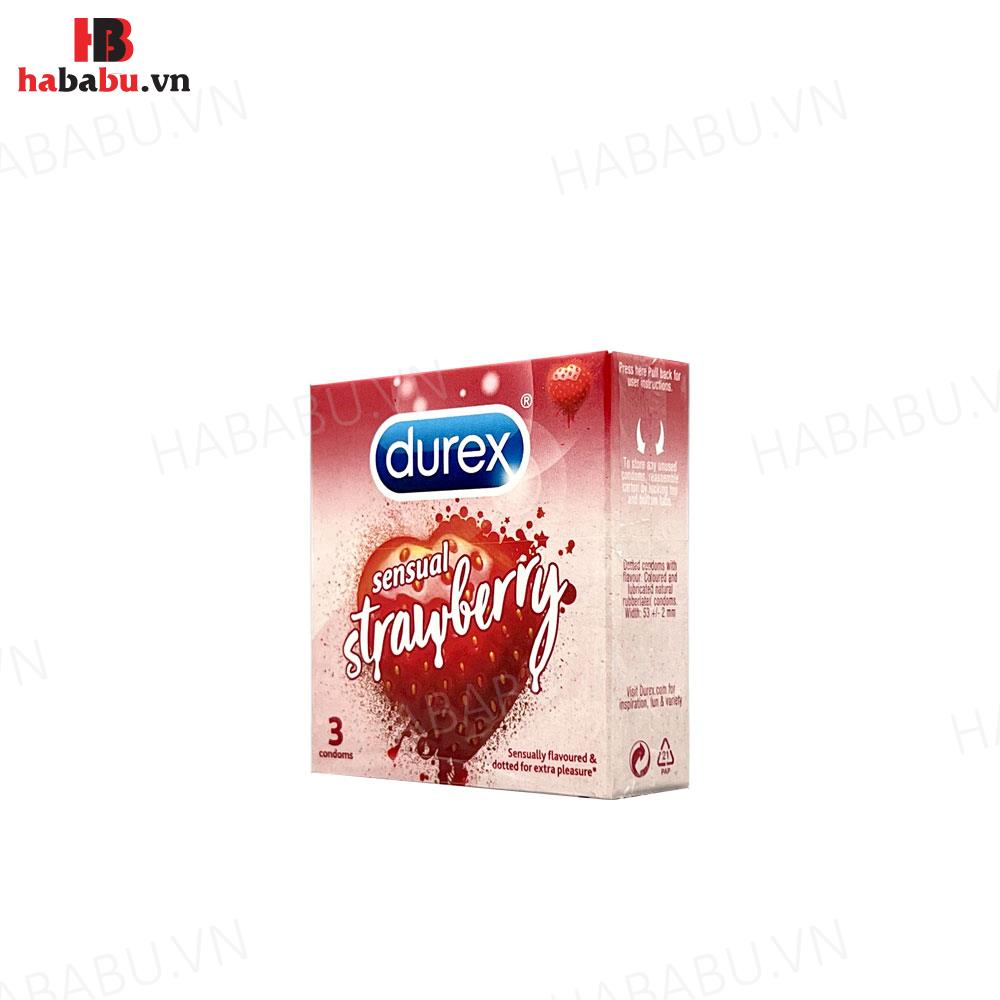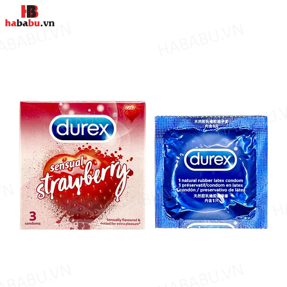 Bao cao su Durex Sensual Strawberry hộp 3 chiếc tăng khoái cảm hương dâu tiêu chuẩn Anh chính hãng giá sỉ tiết kiệm: