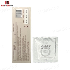 - Đặc điểm: chiều rộng 52mm ± 2mm phù hợp với đa số người Việt. Độ mỏng 0.01 tạo cảm giác chân thật khi sử dụng. Lượng gel bôi trơn nhiều giúp cuộc “yêu” được mượt mà, êm ái hơn. Thiết kế bao trơn mỏng. Hương đào quyến rũ khử mùi vùng kín giúp cuộc yêu thêm trọn vẹn hơn.