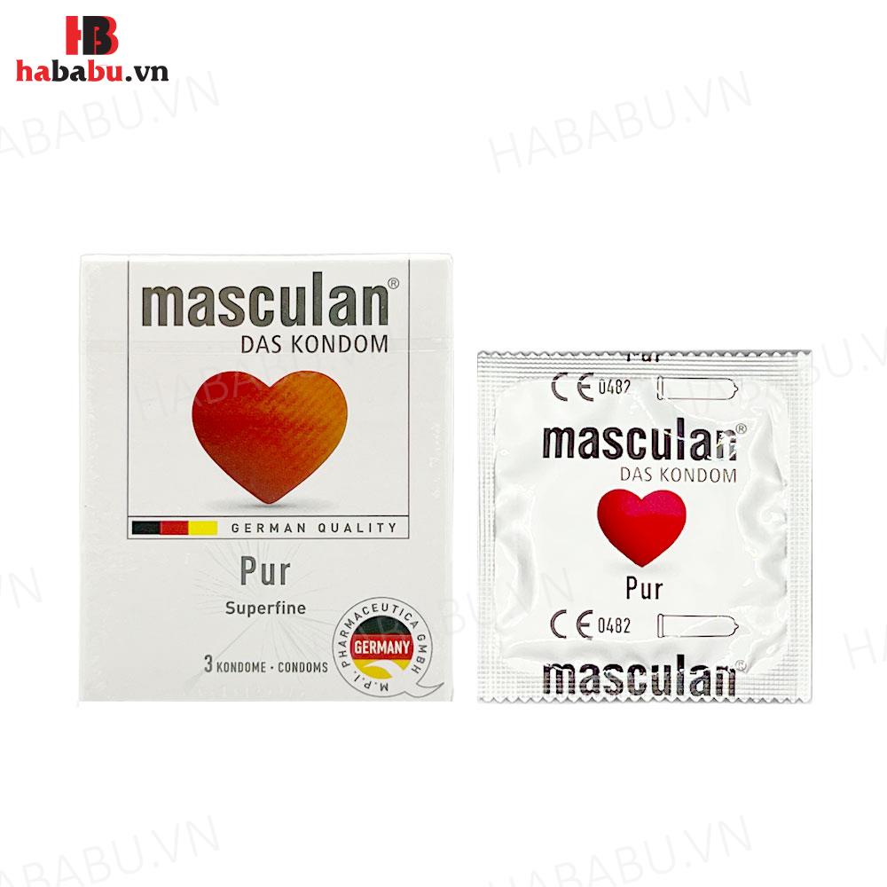 Bao cao su siêu mỏng Masculan Pur hộp 3 chiếc hương vani tiêu chuẩn Đức chính hãng giá sỉ tiết kiệm: