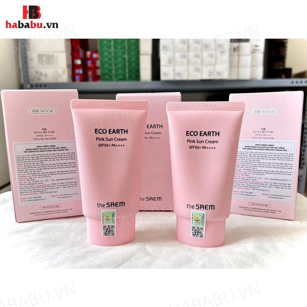 Cảm ơn bạn đã xem sản phẩm kem chống nắng The Saem Eco Earth Pink Sun Cream Ex 50ml tiêu chuẩn Hàn Quốc chính hãng giá sỉ tiết kiệm của Hababu.