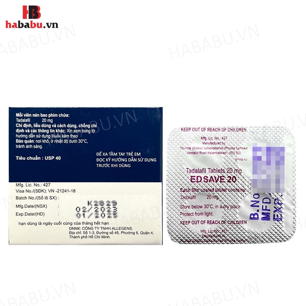 Viên uống tăng cường sinh lý nam Ed Save 20mg hộp 4 viên tiêu chuẩn Ấn Độ giá sỉ tiết kiệm:
