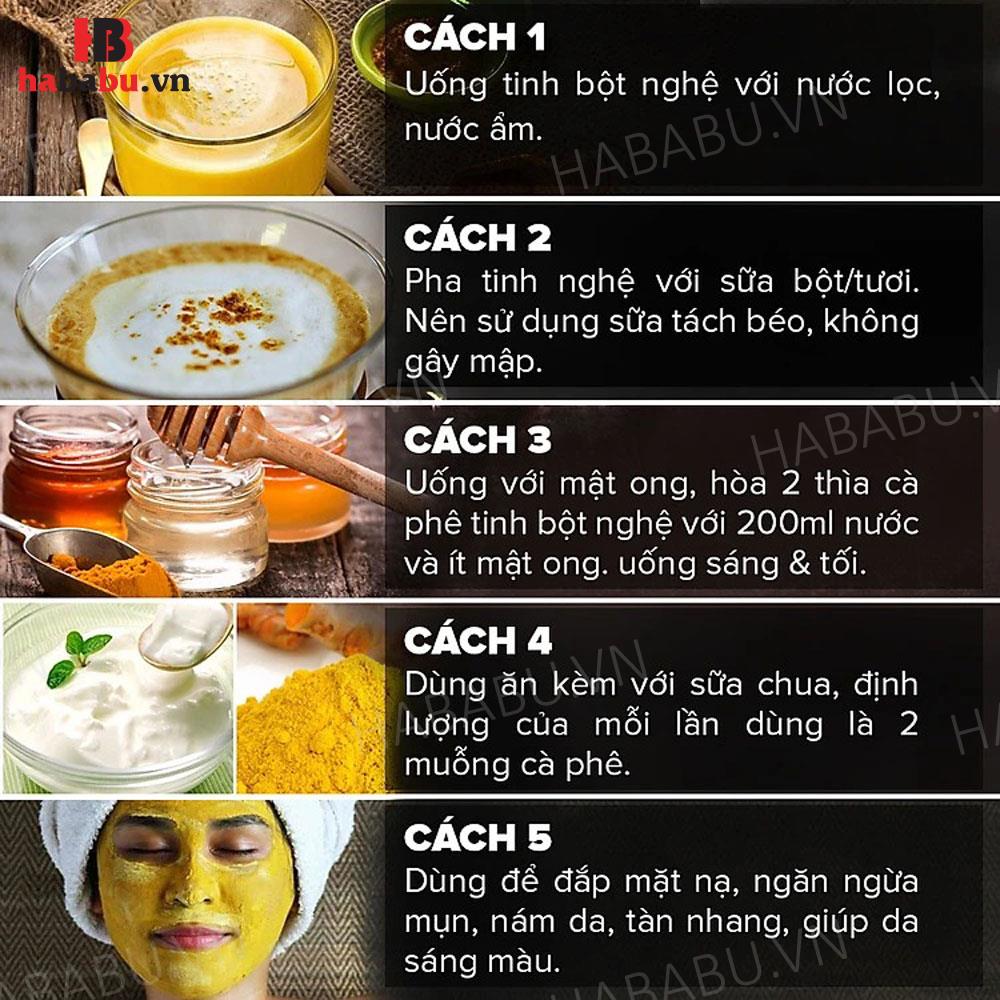 - Cách 2: Pha tinh nghệ với 1 ly sữa tươi, nên dùng sữa tách béo không gây tăng cân.
