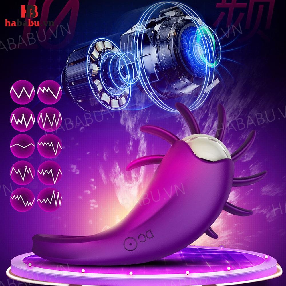 - Đặc điểm: kích thước 90mm x 45mm với thiết kế nhỏ gọn, tiện lợi. Có 10 chế độ rung mạnh nhẹ khác nhau, khi đeo vào dương vật giúp bạn kéo dài thời gian cương cứng vừa có vòng xoay lưỡi liếm kích thích âm đạo cho bạn nữ mau lên đỉnh. Chất liệu silicon mềm mại an toàn cho da không sợ kích ứng, sản phẩm không bị thấm nước.