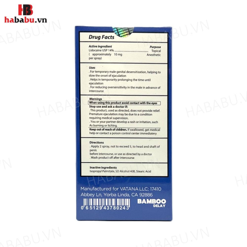 Xịt chống xuất tinh sớm Bamboo Delay 12ml tiêu chuẩn Mỹ giá sỉ tiết kiệm: