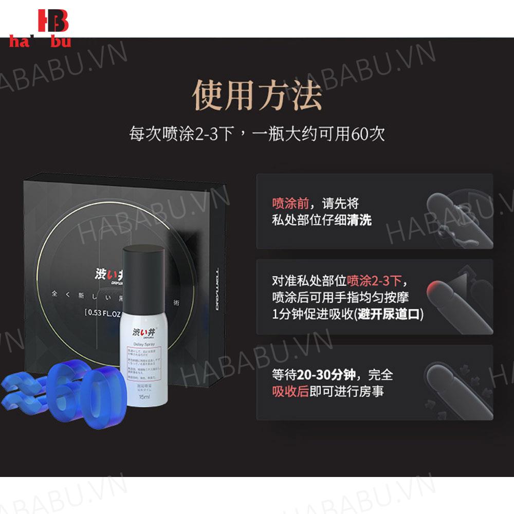 - Loại sản phẩm: xịt chống xuất tinh sớm, kéo dài thời gian quan hệ tiêu chuẩn Nhật Bản.